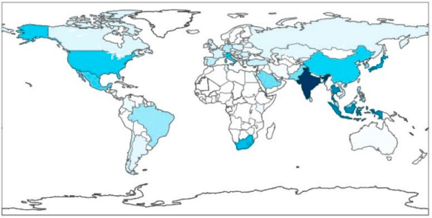 ボットの分布では、インド/インドネシア/タイ/日本/南アフリカ/メキシコ/米国/中国/ブラジル/イタリアが中心となっている。