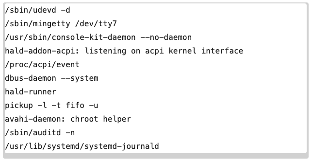 - 一般的な Linux システムのデーモンに似た名前でバイナリを偽装する。