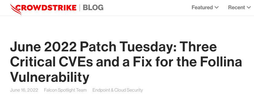 Microsoft の June 2022 Patch Tuesday フルレポートは、ココで参照できる。