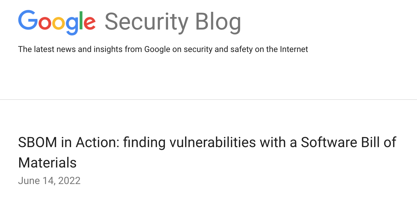 Google のセキュリティ・ブログには、「ソフトウェア・コンポーネントと既知の欠陥を結合するステップにおいて、SBOM の本来の目的である、サイバー攻撃の可能性の管理が推進される。SBOM の普及とツールの改良という道を歩み続けることで、近い将来には、あらゆるソフトウェアの SBOM を要求してダウンロードできるようになる。それに加えて、消費者が使用する、あらゆるソフトウェアに影響を及ぼす脆弱性を理解するために、SBOM を利用できるようになることを期待している」と述べている。