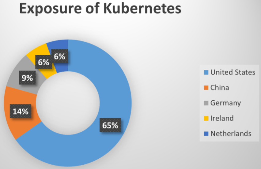 Cyble の研究者たちは、驚異アクターたちが採用するスキャン・ツールと検索クエリを用いて、インターネット上で露出した Kubernetes インスタンスを見つけるための演習を実施した。その結果、90万台という膨大な数の Kubernetes サーバが見つかり、その65% (58万5000台) は米国に、14% は中国に、9% はドイツに、6% はオランダ/アイルランドに存在することが分かった。