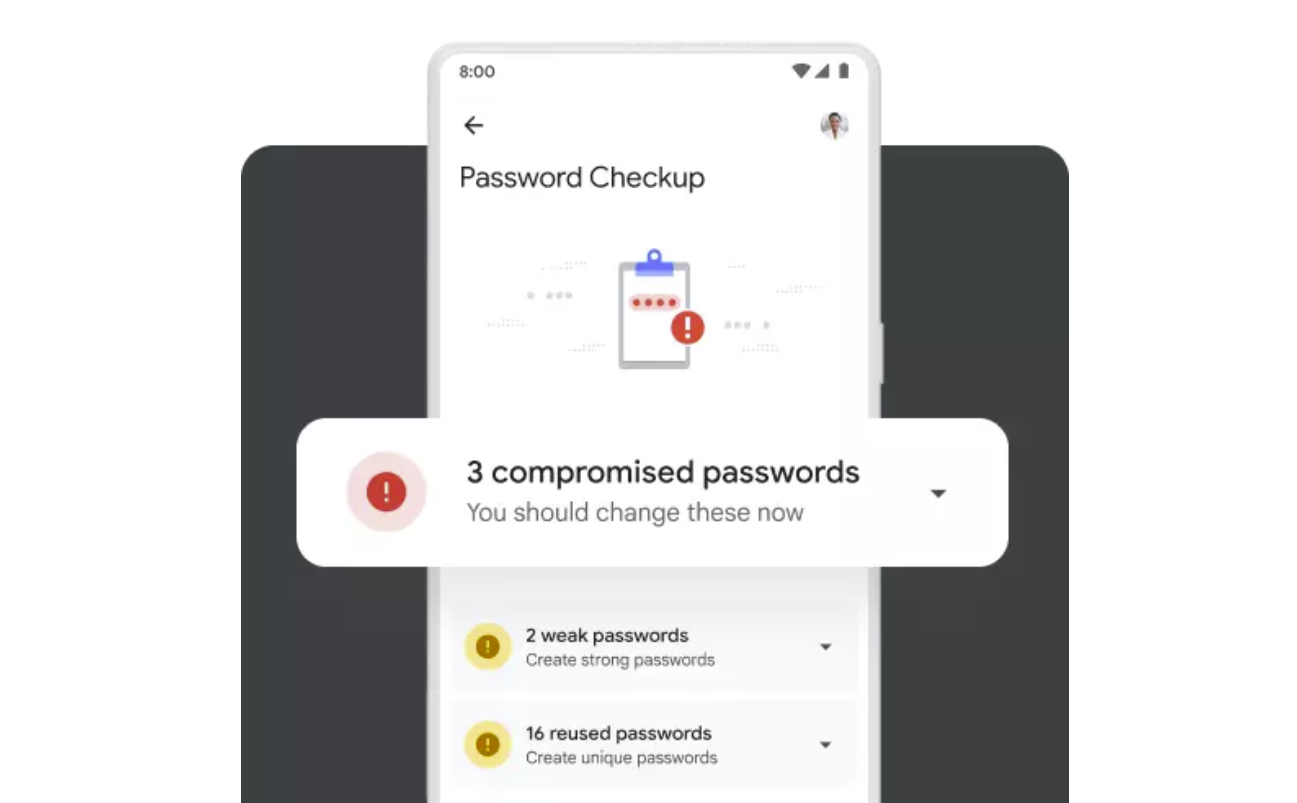 Android に内蔵されているパスワード・チェック機能も、アップグレードされた。ハッキングされた認証情報のチェックだけでなく、Apple iOS のように、脆弱なパスワードや再利用されたパスワードがハイライトされる。また Google は、すべての OS の Chrome ユーザーに対して、危険なパスワードの警告を拡大している。