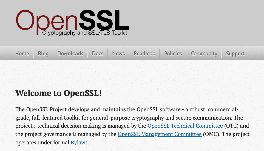 1998年にリリースされた OpenSSL は、SSL (Secure Sockets Layer) および TLS (Transport Layer Security) プロトコルの実装を、オープンソースとして提供する汎用暗号ライブラリである。秘密鍵の生成/証明書署名要求 (CSR) の作成/SSL/TLS証明書のインストールなどを行うことが可能である。