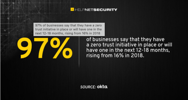 2022/08/18 HelpNetSecurity — Okta の 2022 State of Zero Trust Security Report により、ビジネスにおける重要かつ必須の事項はバズワードからゼロトラストへと、急速に変化していることが判明した。現時点において 97% の企業が、ゼロトラスト・イニシアチブを実施しているか、あるいは、今後の 12~18カ月以内に実施するとしており、2018年の 16% から上昇し、過去4年間で 500%以上の増加となっている。