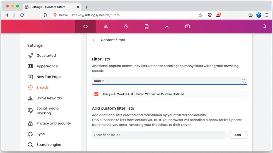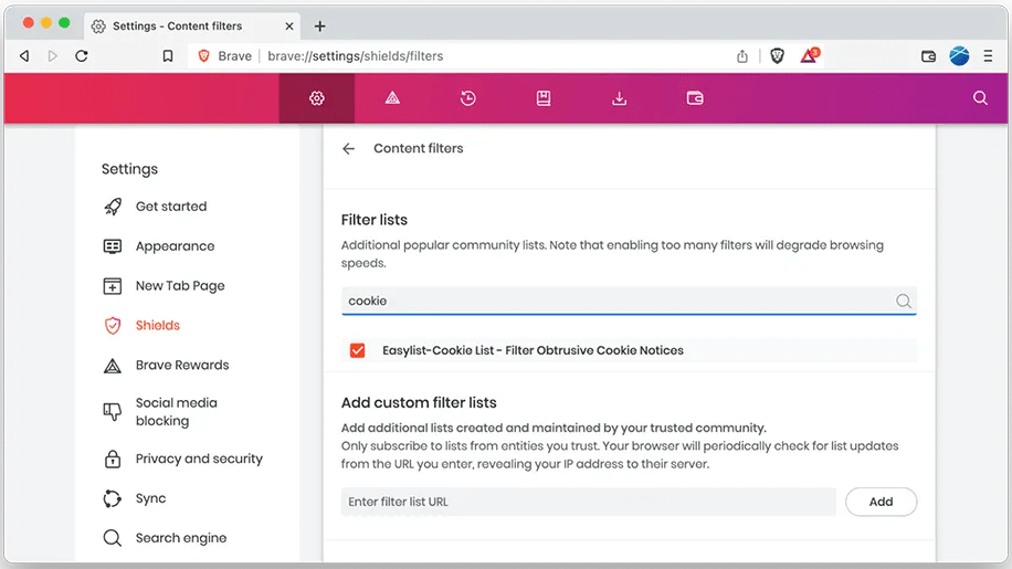 新しいオプションは、ブラウザの設定の Shields に表示され、ユーザーは邪魔な Cookie の通知をブロックするための、ボックスにチェックを入れることが可能となる。