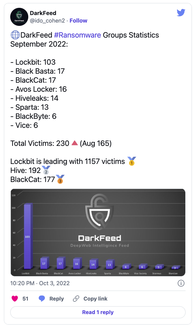 この Lockbit のアフィリエイトは、このところ最も活発に活動しているサイバー・ギャングであり、DarkFeed で共有された情報によると、数百の組織を攻撃していることを示すデータがリークされている。