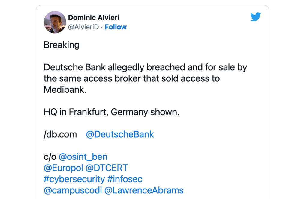 An initial access broker claims to have hacked Deutsche Bank