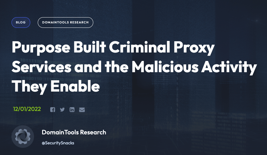 2022/12/02 BleepingComputer — 新しい家庭用プロキシ市場が、ハッカー/サイバー犯罪者/フィッシャー/ダフ屋/詐欺師たちの間で人気を集めており、世界中で 100万のプロキシ IP アドレスへのアクセス権が販売されている。これらのサービスを監視してきた DomainTools のアナリストたちが発見した、新しいプラットフォーム BlackProxies は、この分野で急成長しているサービスの1つであると報告されている。