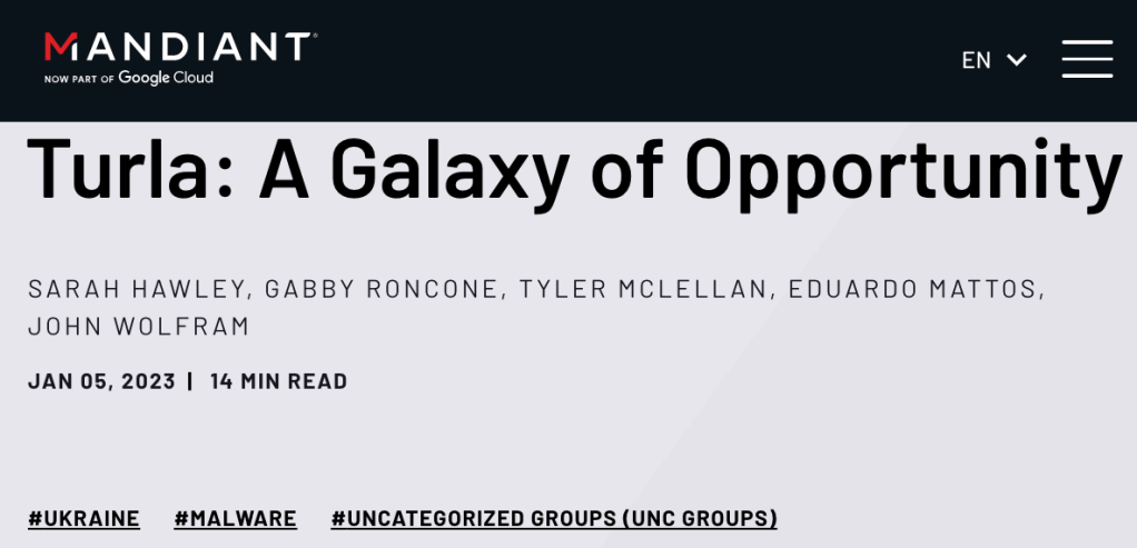 2023/01/08 TheHackerNews — ロシアのサイバー・スパイグループ Turla が、10年前のマルウェアの攻撃インフラを利用して、ウクライナのターゲットに、独自の偵察ツールやバックドア・ツールを配布していることが確認された。Google 傘下の Mandiant は、この活動を UNC4210 という未分類のクラスタ名で追跡しており、乗っ取られたサーバを調査したところ、2013年に VirusTotal にアップロードされた ANDROMEDA (別名 Gamarue) というマルウェアの亜種に該当したと述べている。