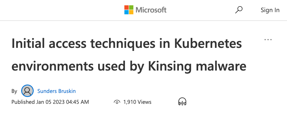 Microsoft によると、PostgreSQL サーバのミスコンフィグレーションが Kinsing に悪用され、この方式によるクラスタの大量感染が確認されたとのことだ。