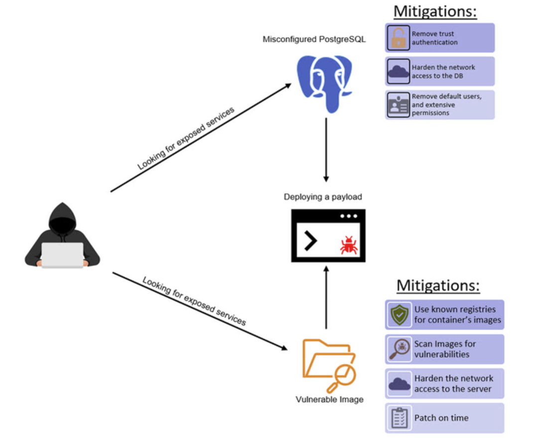 Microsoft によると、PostgreSQL サーバのミスコンフィグレーションが Kinsing に悪用され、この方式によるクラスタの大量感染が確認されたとのことだ。