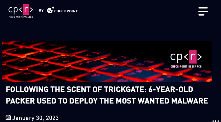 2023/01/30 InfoSecurity — TrickGate という名の悪意のソフトウェア・サービスは、6年以上にわたり脅威アクターたちに利用され、EDR (Endpoint Detection and Response) 保護ソフトウェアをバイパスしてきたようだ。この Check Point Research (CPR) が発表した調査結果は、今日の未明に InfoSecurity と共有された。最新のアドバイザリによると、Emotet/REvil/Maze などのグループに属する複数の脅威アクターたちが、このサービスを悪用してマルウェアを展開していたことが示唆される。