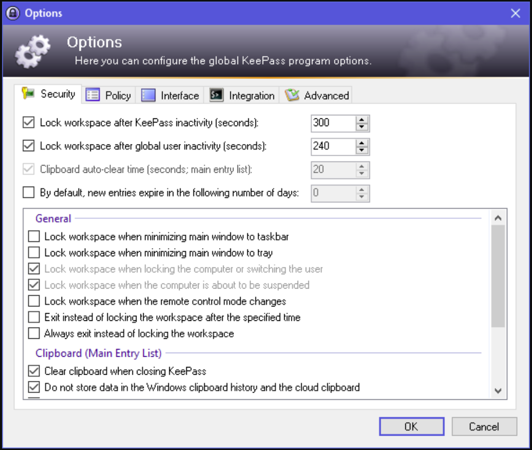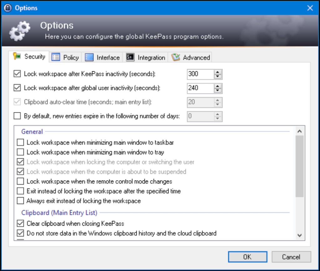 KeePass のオプションを強制コンフィグで無効にする (KeePass)