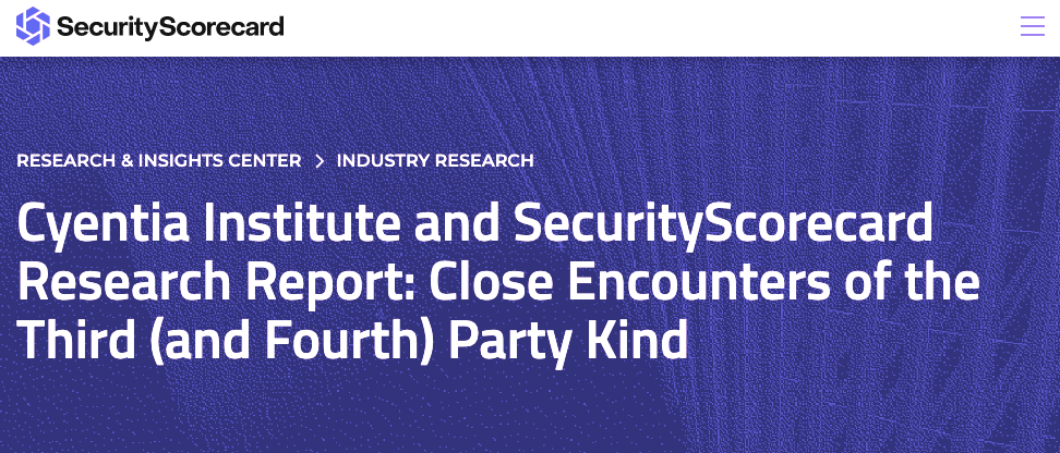 2023/02/01 InfoSecurity — サプライチェーン攻撃の増加に伴い、サプライヤー/ビジネスパートナー/顧客のセキュリティが、より厳しく監視されるようになっている。2023年2月1日に、セキュリティ評価プロバイダー SecurityScorecard と Cyentia Institute 発表した Close Encounters of the Third (and Fourth) Party Kind という新しいレポートは、組織の依存関係におけるリスク調査に基づくものである。