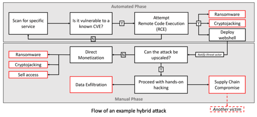 イニシャル・アクセスを利用して、リモート・アクセス用の AnyDesk ソフトウェアをインストールしようとするものや、Buhti というランサムウェアの Windows 版をインストールしようとする驚異アクターたちがいたという。