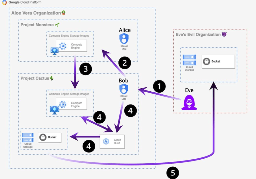彼は、「想定される攻撃の例を挙げると、標的となる組織に属する従業員の GCP ユーザー・アカウントを驚異アクターが制御し、そのアカウント内の Google コマンドラインへの簡単な入力により、脅威アクターが所有する GCP アカウントへと、データをコピーする許可が与えられる」とも詳述している。