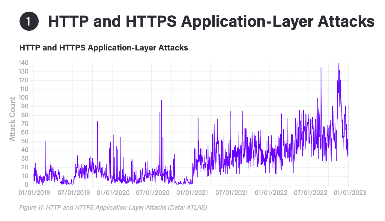 ちなみに、表題の「HTTP/S DDoS 攻撃が3年間で 487%急増」という状況を示すグラフは、上記となります。このようなデータが、たくさん提供されていますので、ぜひ、ご参照ください。