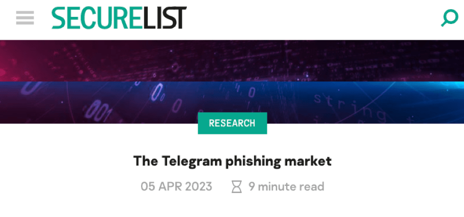 2023/04/06 InfoSecurity — フィッシング技法の開発に注目する脅威アクターたちが、アクティビティの自動化や各種のサービス提供において、Telegram を悪用するケースが増えている。このような傾向は、Kaspersky のサイバー・セキュリティ専門家たちの調査/分析によるものである。水曜日のアドバイザリで、Web コンテンツ・アナリストである Olga Svistunova は、「フィッシャーたちは商品を宣伝するために Telegram チャネルを作り、そこでフィッシングについて聴衆を教育し、投票によりサブスクライバーを楽しませている。このようなチャネルへのリンクは、彼らのフィッシング・キットや YouTube/GitHub などを通じて拡散される」と述べている。