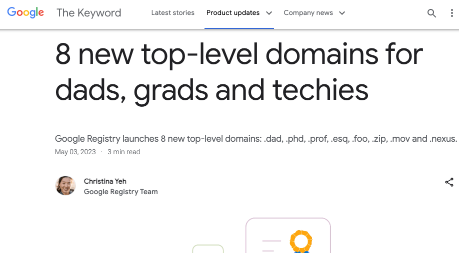 2023/05/16 BleepingComputer — Google た立ち上げる新たな ZIP/MOV インターネット・ドメインについて、脅威アクターがフィッシング攻撃やマルウェア配信に悪用する可能性があると、サイバー・セキュリティ研究者たちと IT 管理者たちが警告している。Google は5月初めに、Web サイトやEメールのホスティングに使用できる、8つの新しい TLD (Top-Level Domains) を発表した。それらの新しい TLD は、.dad/.esq/.prof/.phd/.nexus/.foo、そして本記事で取り上げる .zip/.mov だ。