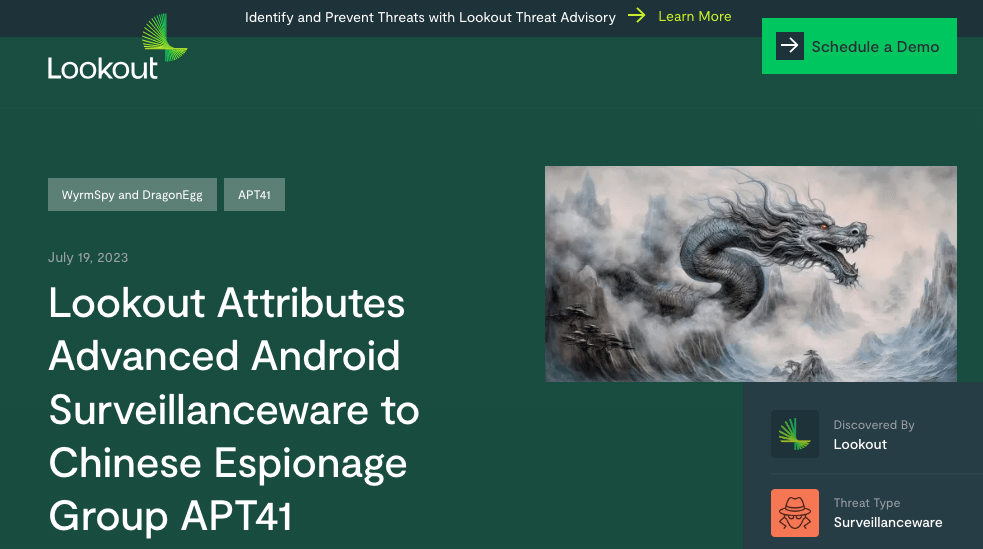 通常、APT41 ハッカーたちは、脆弱性のある Web アプリケーションや、インターネットに露出したエンドポイント経由で、標的のネットワークに侵入する。しかし Lookout によると、同グループは WyrmSpy や DragonEgg スパイウェアなどで、Android デバイスを標的にしているという。