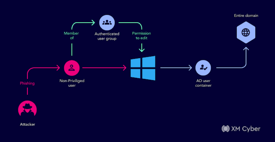 影響を受けるオブジェクトの1つは AD User Container であり、その子オブジェクトは、Domain Admin グループの一部であるユーザーだった。したがって、このドメイン内の、どのユーザーであっても、Domain Admin のパーミッションを得ることが可能となる。つまり、ドメイン全体を危険にさらすために必要なのは、1人の非特権ユーザーがフィッシング・メールの餌食になることだけだった。それにより、ドメイン全体の、完全な侵害につながる可能性が生じた。