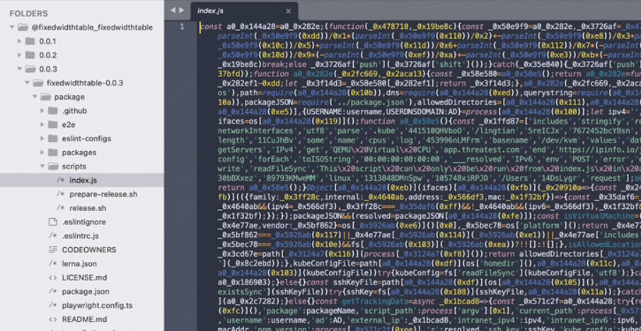 Sonatype は、「これらのパッケージは、ESLint プラグインや TypeScript SDK ツールなどの、JavaScript ライブラリ/コンポーネントになりすまそうとしている。それらが、インストールされると、複数のバージョンのパッケージが難読化されたコードを実行し、ターゲット・マシーンから機密ファイルを収集し、吸い上げることが確認された」と述べている。