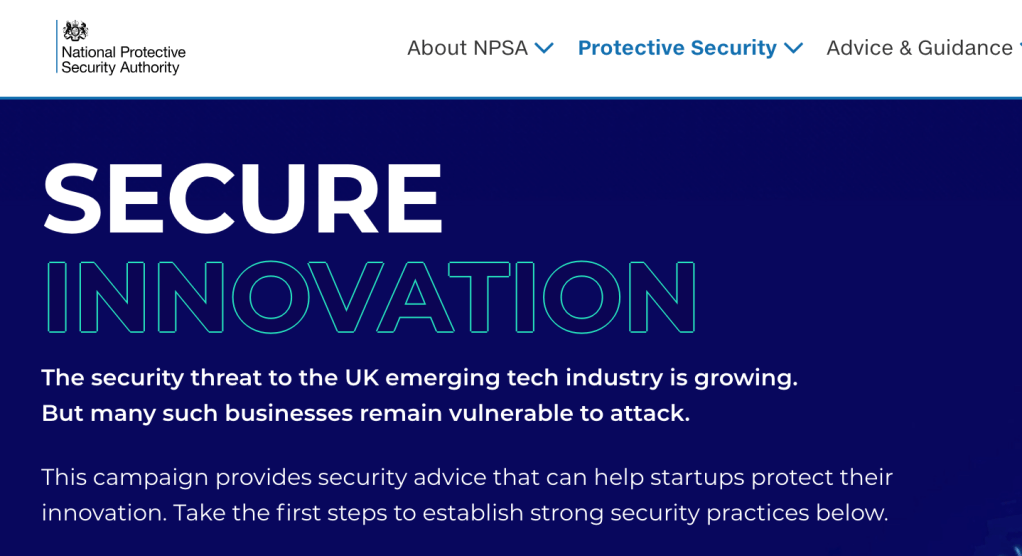 2023/10/18 InfoSecurity — 英国の NCSC (National Cyber Security Agency) および 国内諜報機関 MI5 の新たな部門である NPSA (National Protective Security Authority) は、最先端技術を開発する新興企業に対して、国家的な脅威の増大への警戒を促すための、新たな啓蒙キャンペーンを開始した。この、2023年10月17日に開始されたキャンペーンは、最新の ”Secure Innovation” ガイダンスで構成されている。そして、無料のクイック・スタート・ガイドも含まれており、セキュリティに関する幅広い専門知識を持たない人々が、安全にイノベーションを達成するための、第一歩を踏み出せるようにっしている。