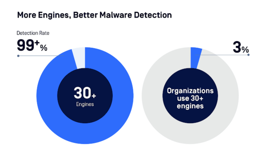 - 複数のマルウェア対策エンジンを採用することは、極めて重要である。30以上のエンジンでスキャンした場合、99% 以上の精度を達成している。