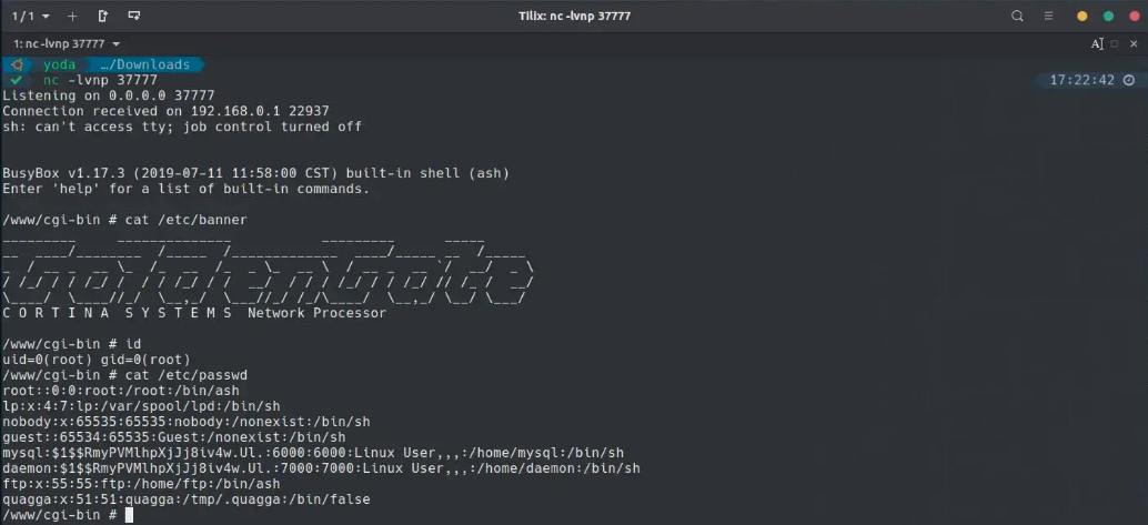 - CVE-2023-46711 – ハードコードされた脆弱な暗号キーの使用: この脆弱性は、VR-S1000 のセキュリティの弱点を明らかにするものであり、mysql とデーモンのユーザーに対して、ハードコードされた MD5crypt ハッシュが使用されることで、対象となるデバイスをブルートフォース攻撃の標的にし得るものだ。