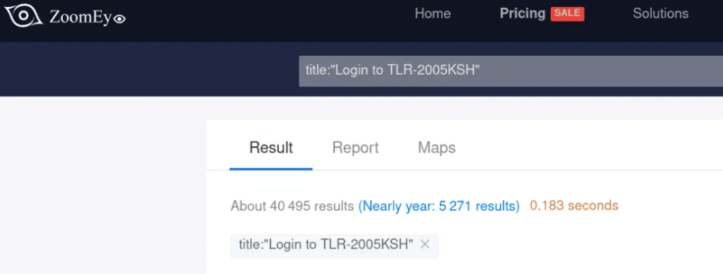 インターネット接続デバイスの特定に特化した検索エンジン ZoomEye のデータによると、ネット上に公開されている TLR-2005KSH ルーターは、40,000 台以上あるという。さらに、サイバーセキュリティ企業 LeakIX の報告によると、これらのルーターのうち、4,000台以上が一般に公開されており、悪用の格好の標的となっていることがわかる。