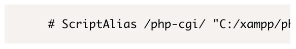 - XAMPP ユーザーのための設定調整:“httpd-xampp.conf” の “ScriptAlias” ディレクティブをコメントアウトする:
