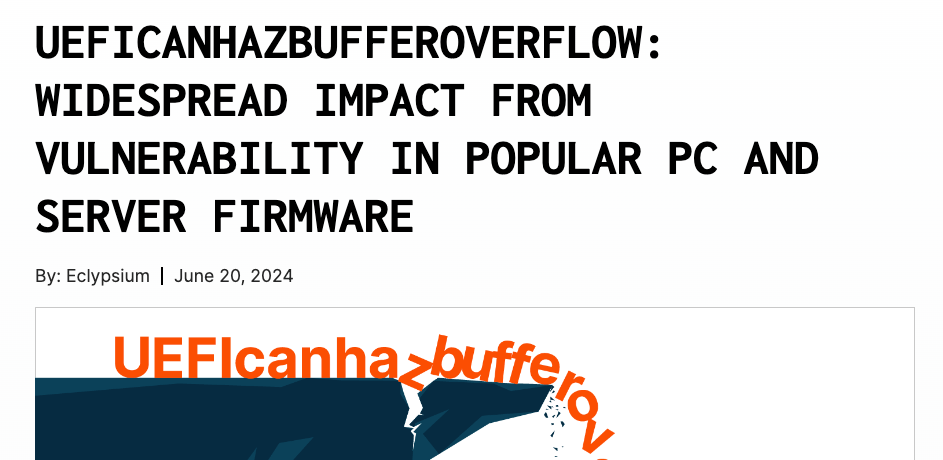 サプライチェーン・セキュリティ企業の Eclypsium は、「この脆弱性によりローカル攻撃者は、ランタイム内で UEFIファームウェアの特権を昇格させ、コードを実行させることが可能となる。このような低レベルでの脆弱性の悪用は、一般に見られるようになってきた、ファームウェアにおけるバックドア (BlackLotus など) の典型である。このようなインプラントは、攻撃者にデバイス内での継続的な永続性を与えるものだ。さらに、多くのケースにおいて、OS やソフトウェア層で実行されている、より高度なセキュリティ対策を回避する能力を備えている」と、The Hacker News と共有したレポートで述べている。