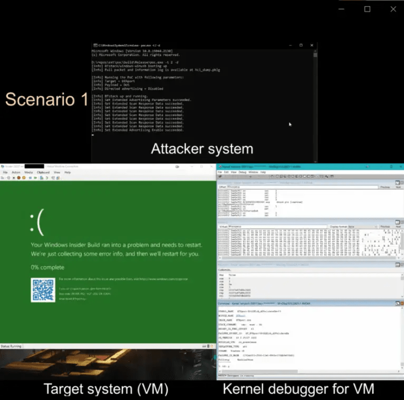 Milos による詳細な解析は、この脆弱性の悪用の可能性を明らかにし、割り当てられたデータ量の制御/境界外書き込みの操作が、攻撃者に許される状況を示している。GitHub で公開された PoC エクスプロイトは、プログラマブルな Bluetooth デバイスを悪用する攻撃者が、リモート攻撃を行う方法を紹介していため、この脆弱性の深刻度は、さらに増大する。