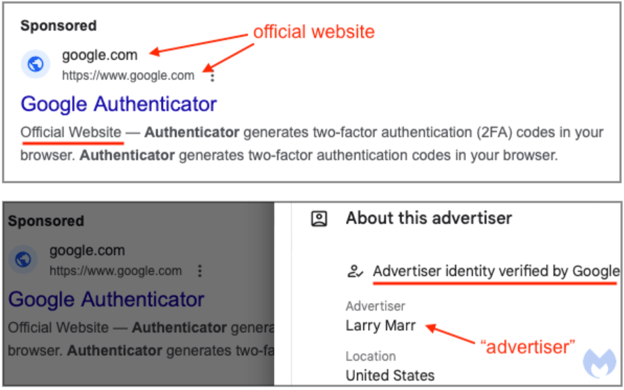2024/07/30 SecurityOnline — Google を装う脅威アクターたちが、Google Authenticator の偽広告を通じてマルウェアを拡散するという悪質なキャンペーンを、Malwarebytes Labs のサイバー・セキュリティ研究者が発見した。