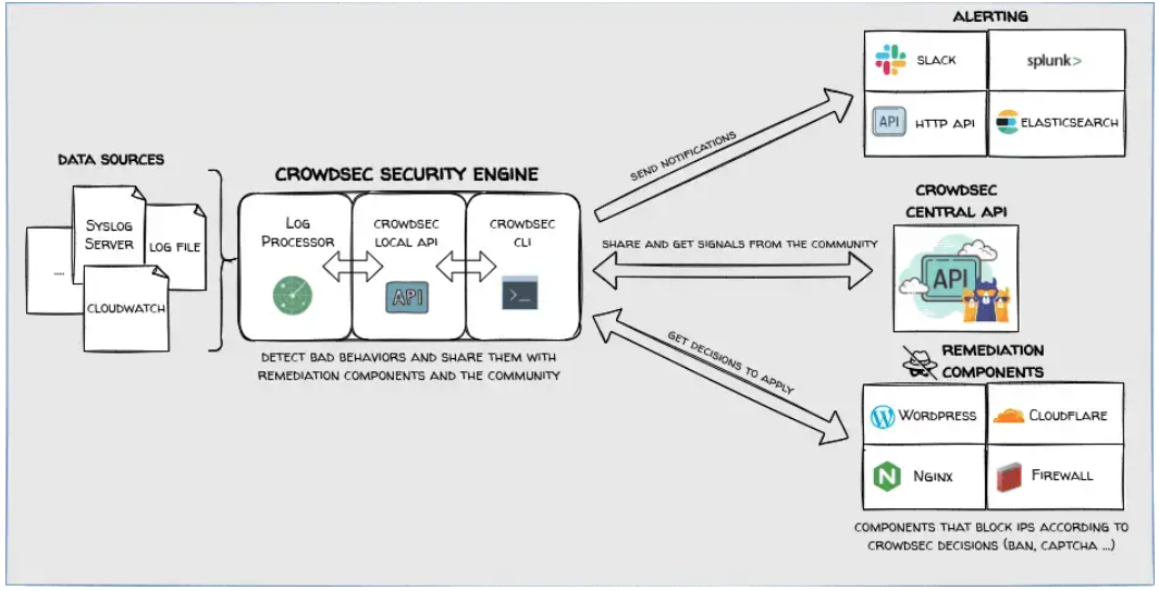 - ユーザーフレンドリー: CrowdSec は、使いやすさを最優先しているため、あらゆる技術レベルのユーザーあっても利用できる。直感的なインターフェースと包括的なドキュメントにより、セットアップと設定が簡素化される。