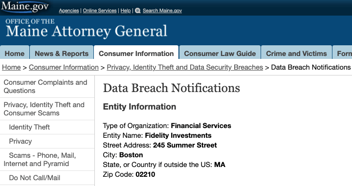 Fidelity Investments がメイン州司法長官に提出した通知書には、「8月17日〜19日にかけて、最近に第三者が開設した2つの顧客アカウントを介して、顧客の不正にアクセスされ、特定の情報が取得された。 8月19日に、このインシデントを発見し、ただちにアクセスを遮断し、外部のセキュリティ専門家の支援を受け、速やかに調査を開始した。第三者により取得された情報は、当社の顧客の一部に関するものである。ただし、このインシデントは、顧客の Fidelity のアカウントへのアクセスには一切関係していない」と記されている。