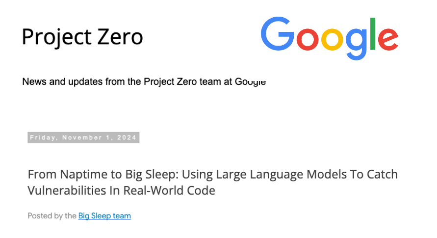 2024/11/04 SecurityWeek — Google によると、従来からのファジングでは到達できなかった SQLite の脆弱性が、LLM (Large Language Model) プロジェクトにより発見されたという。同社は 2024年6月に、LLM が持つとされる、攻撃的セキュリティ能力の評価を目的とする、Project Naptime の詳細を共有した。Google の Project Zero と DeepMind の共同プロジェクトである Naptime は、その後に Big Sleep というプロジェクトへと進化している。