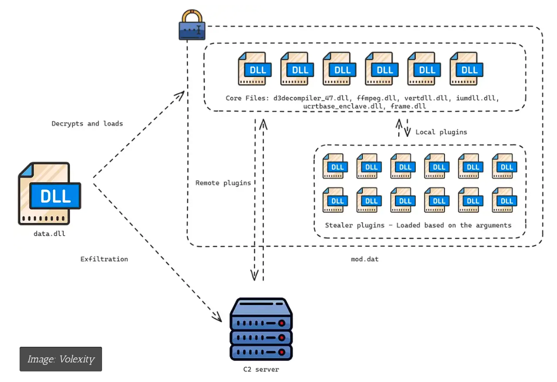 このマルウェアのモジュール型のアーキテクチャにより、攻撃者は必要に応じてプラグインのロードが可能であり、適応性を向上させている。 Volexity は、12 種類の悪意のプラグインを発見したが、その中には、FortiClient を特に標的とするものも含まれる。