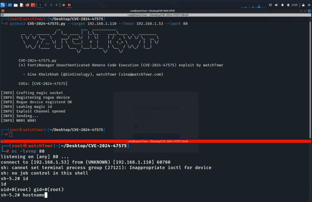 2024/11/17 SecurityOnline — FortiManager/FortiAnalyzer デバイスに存在する、ゼロデイ脆弱性 CVE-2024-47575 (CVSS 9.8) の技術的詳細と PoC エクスプロイト・コードが、watchTowr のセキュリティ研究者である Sina Kheirkhah から公開された。FortiJump と命名された、この脆弱性 CVE-2024-47575 は、FGFM プロトコルにおける認証メカニズムの欠落に起因するものであり、リモートの認証されていない攻撃者に対して、任意のコード/コマンド実行を許すものだ。