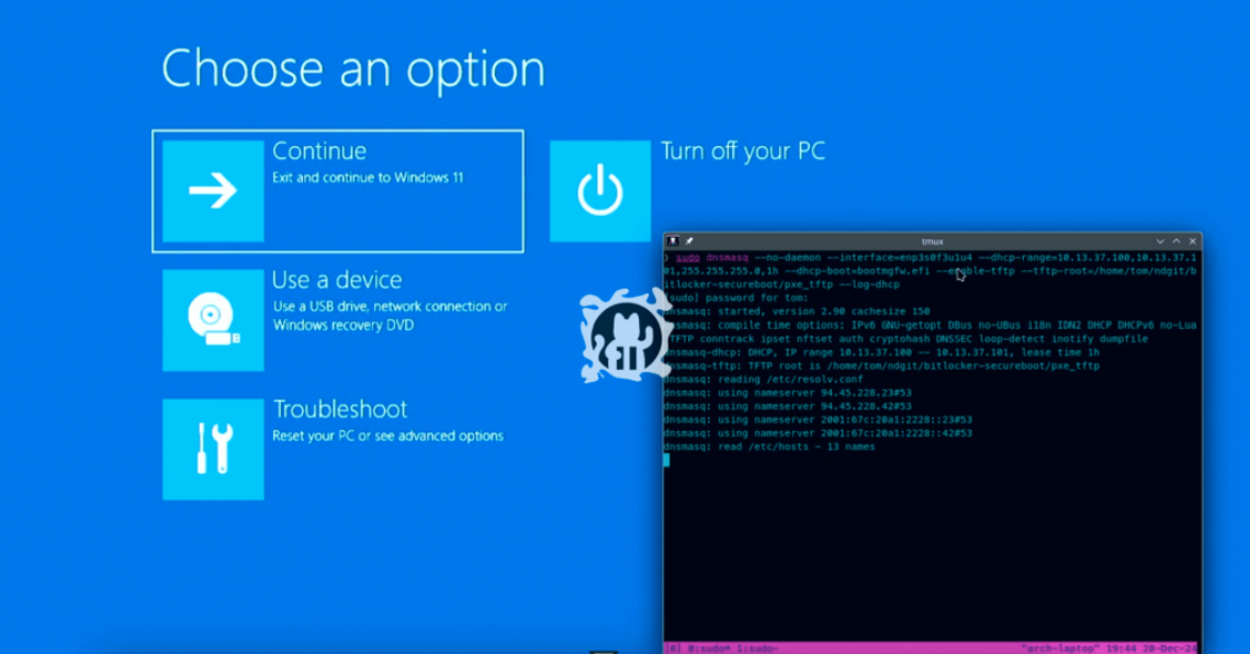 この脆弱性 CVE-2023-21563 は bitpixie と命名され、2023年の時点で Microsoft により対応が完了している。しかし、Secure Boot 経由で旧式の Windows ブートローダーを悪用することで、暗号化キーを抽出する方法が、Lambertz により実証された。この攻撃に必要なのは、デバイスへの一瞬の物理的アクセスとネットワーク接続のみであり、ドライバーやハードウェアをハッキングする必要はないという。