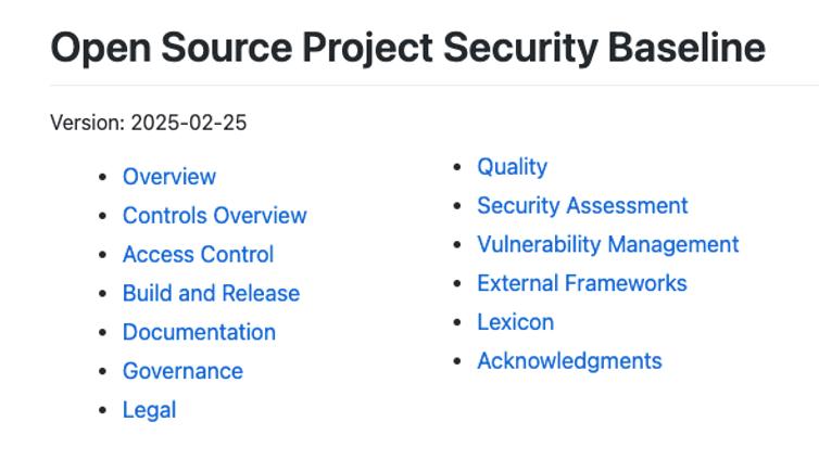 この、Open Source Project Security Baseline (OSPS Baseline) と名付けられた取り組みは、脆弱性リスクの軽減と、プロジェクトの信頼性向上を目的とした、最低限のベスト・プラクティスを実装するためのガイダンスの提供であり、オープンソース・プロジェクトのセキュリティの強化を目的としている。