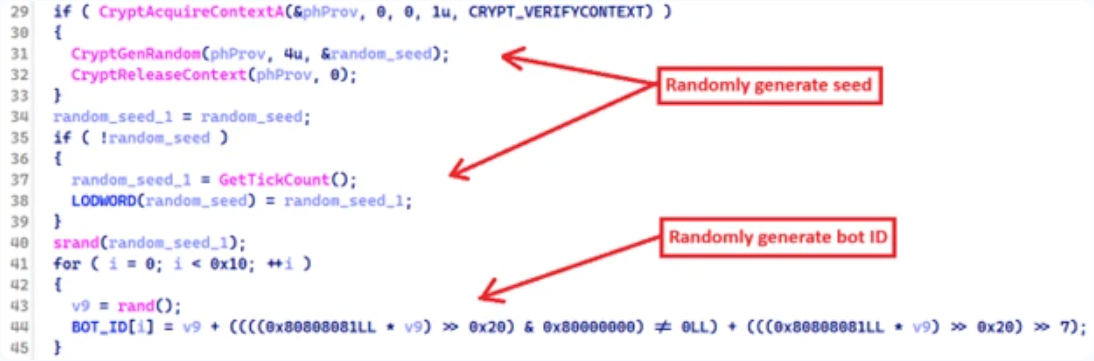 PipeMagic は 16 Byte のランダム・ボット ID で初期化され、スレッドを生成した後に、”.\pipe\1.<Bot ID hex string>” といった形式の双方向名前付きパイプを作成し、ペイロードの継続的な配信を可能にする。