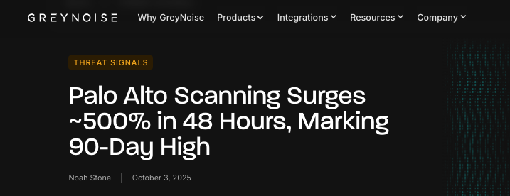 これらの脆弱性 CVE-2025-20333 (CVSS 9.9)/CVE-2025-20362 (CVSS 6.5) は、中国を拠点とするハッカー集団による、ArcaneDoor スパイ活動に関連する攻撃で悪用された。さらに GreyNoise は、Palo Alto Networks GlobalProtect ログイン・ポータルに関連するスキャン活動が急増し、関与するユニーク ASN の数も急増していると警告している。