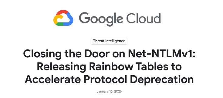 2026/01/17 CyberSecurityNews — Google 傘下の Mandiant が公開したのは、Net-NTLMv1 向けの包括的な Rainbow Table データセットである。それにより、レガシー認証プロトコルが抱えるセキュリティ・リスクの実証が大幅に推進されることになる。このデータセットにより Mandiant が強調するのは、Net-NTLMv1 から直ちに移行する必要があるという、ユーザー組織に対する緊急のメッセージである。Net-NTLMv1 は、1999 年の時点で暗号学的に破られており、遅くとも 2012 年からは安全でないことが広く知られている、非推奨のプロトコルである。