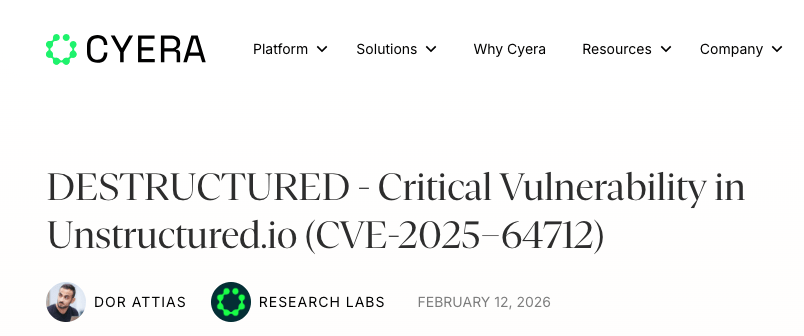 2026/02/13 gbhackers — Unstructured.io の “unstructured” ETL ライブラリに存在する、深刻な脆弱性 CVE-2025-64712 (CVSS 9.8) が新たに公開された。この脆弱性を悪用する攻撃者は、信頼できないドキュメントを処理するシステム上で任意のファイル書き込みを実行し、その結果としてリモート・コード実行 (RCE) を引き起こす可能性がある。