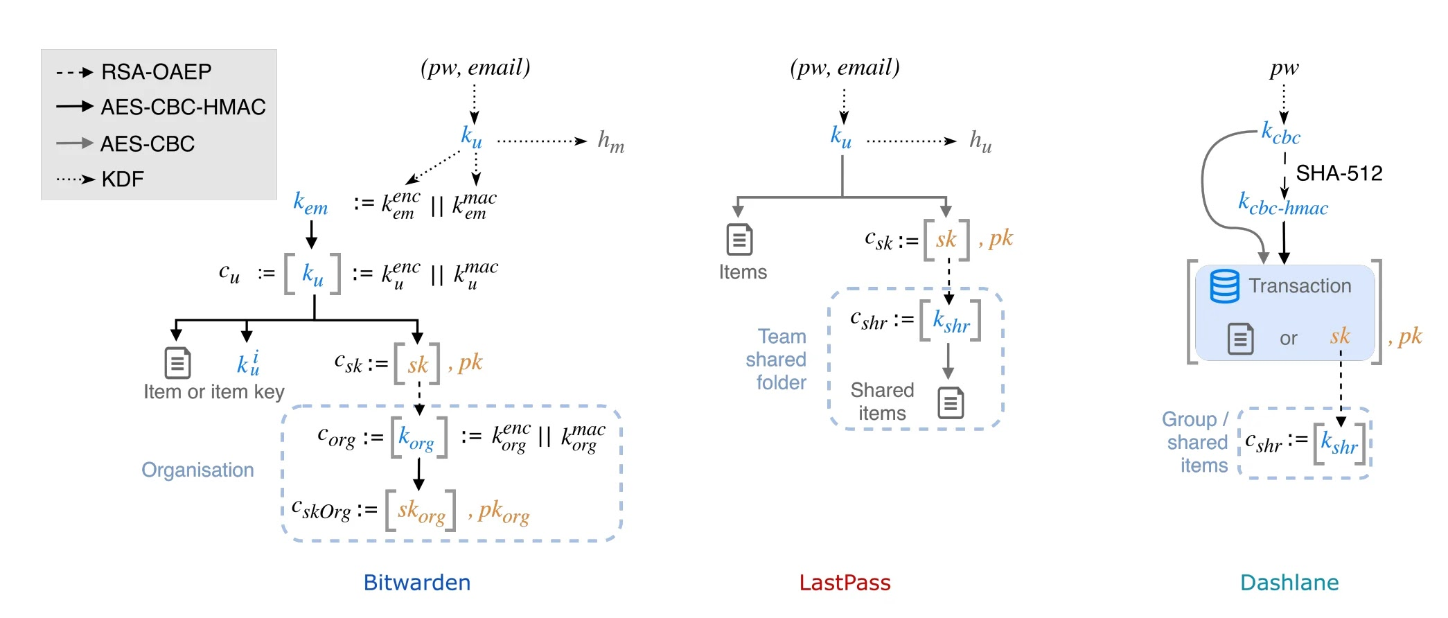 それぞれのベンダーは、”zero-knowledge encryption” を宣伝している。それが意味するのは、サーバが侵害されても平文ヴォールト (vault) へのアクセスが不可能なことだ。しかし研究者たちが実証したのは、機密性および完全性の保護で繰り返される失敗であった。