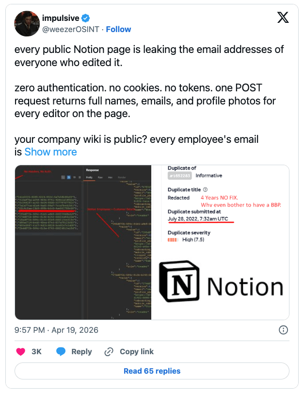 X 上のセキュリティ研究者によると、Notion における公開ページのブロック権限を処理する方法に、この脆弱性は起因する。